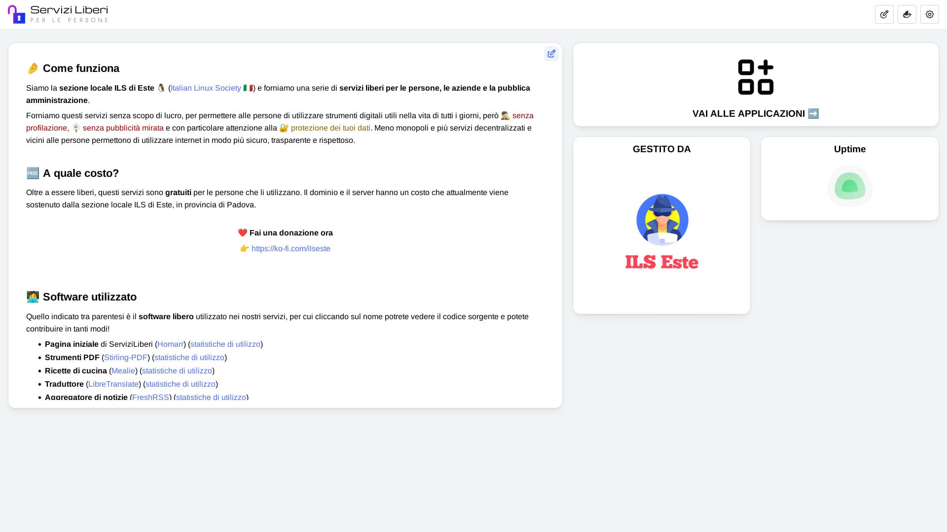 Era gennaio 2024 quando abbiamo lanciato ServiziLiberi.it, un progetto che mira a dare gratuitamente dei servizi digitali basati su software libero. In sostanza, è un esperimento che conferma la possibilità di usare software libero con semplicità, via web (senza installare programmi o app) e in modo veramente gratuito, senza raccogliere dati dell'utente che naviga per mostrare pubblicità personalizzata ovunque.