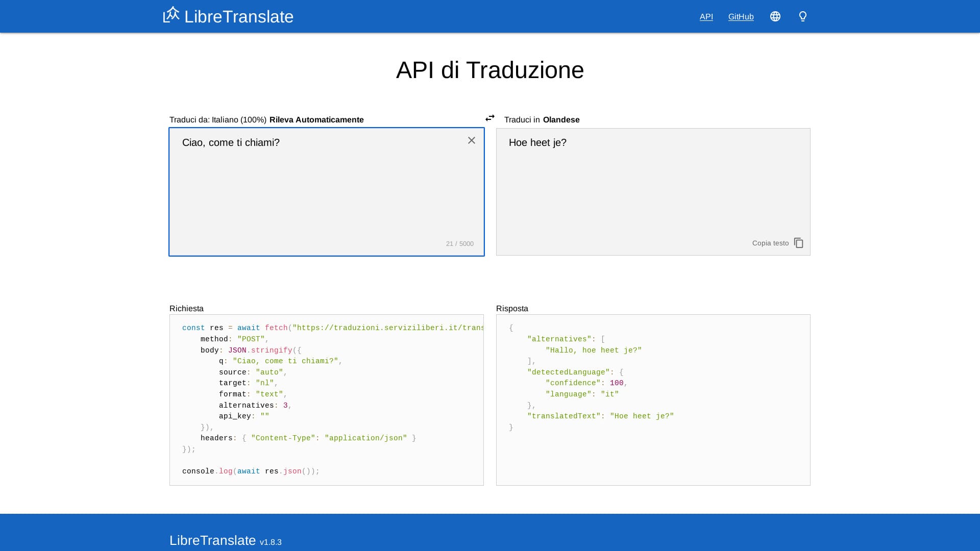 Interfaccia per le traduzioni di testi fra varie lingue. Con l'avvento di LLM (leggasi "Intelligenza Artificiale"), la differenza di qualità delle traduzioni si nota purtroppo, ma per il momento lo teniamo ancora attivo.