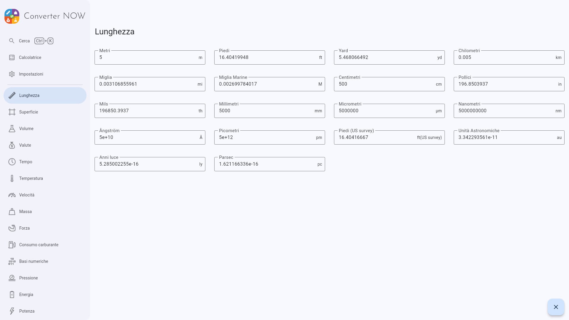 Applicazione per convertire numeri da un'unità di misura a decine di altre unità. Lo sviluppatore è italiano.